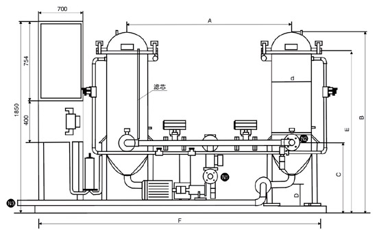 (一)XD-F型滤芯式过滤器 本公司推出了的滤芯式自动过滤系统,它适用于过滤精度高、杂质含量适中的应用场合,流程如下图。液体由滤芯外部进入,杂质被拦截在滤芯外部,待杂质累积达到一定程度,压差上升到系统设定值,则进出流体阀关闭,压缩气体进入,将杂质排出,滤网得以再生。