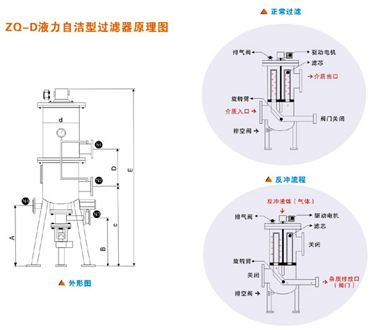 (三)ZQ-D液力自洁型滤系统 为了适应低粘度,高精度过滤要求,本公司推出了液力自洁型过滤系统,如同自清洗系统一样,滤芯在清洗过程中,系统可以正常过滤。